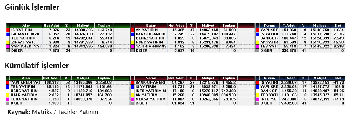 AKBNK: Banka, 4Ç25 finansal sonuçlarını piyasa beklentisine uyumlu olarak 18.331 milyon TL net kar ile açıkladı. Dördüncü çeyrek net karlılık yıllık bazda %99, bir önceki çeyreğe göre %30 artış kaydetti. 4Ç25’te net faiz marjındaki kademeli iyileşme sürdü. Fonlama maliyetlerindeki normalleşme ve TL kredi-mevduat makasının pozitife dönmesiyle swap dahil NFM çeyreklik bazda 40 baz puan iyileşti. Net faiz gelirleri ise 2025 genelinde yaklaşık %50 artış kaydetti. Operasyonel gider artışı %33 ile gelir artışının altında kalırken, gider/gelir oranı %50,6 seviyesinde gerçekleşti. 2025 yılı özsermaye karlılığı ise %21,5 olarak gerçekleşti.