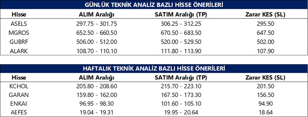 Günlük Teknik Analiz Bazlı Hisse Önerileri
