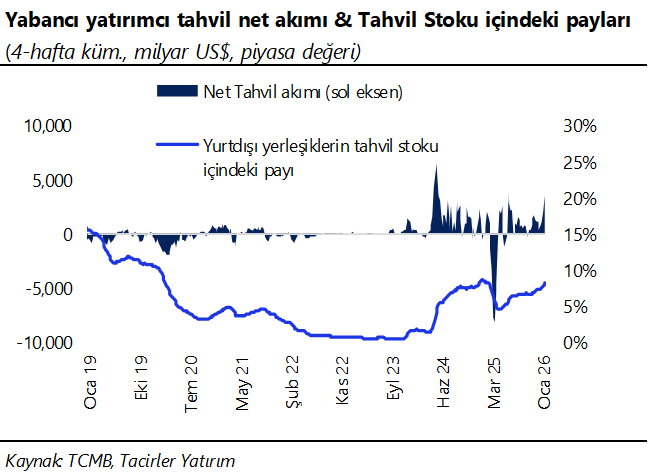 Günaydın. Küresel risk iştahı yeni güne pozitif başlıyor. ABD’de dün beklentilerin iki katı yukarıda açıklanan tarım dışı istihdam verileri, Fed’den faiz indirim beklentilerini Haziran’dan Temmuz, hatta Eylül ayına ötelemesine karşın yüksek likiditenin süreceği beklentisi borsaları destekliyor. ABD ve Avrupa vadelileri alıcılı, Asya’da ise karışık bir görünüm var, ancak MSCI Asya – Pasifik endeksi yükselişini sürdürüyor. Borsa İstanbul’da zirvede soluklanma devam ediyor. BIST 100 Endeksi, dün sadece %0,1 azalışla 13787.82 puana gerilerken, endekse en fazla pozitif katkı sağlayan ilk beş şirket TCELL, ASTOR, FROTO, GUBRF, ISCTR; endekse negatif etki edenler ise KLRHO, ASELS, THYAO, ALARK, GARAN oldu. Son bir haftada düzenli para girişi ile dikkat çeken şirketler ise THYAO, FROTO, GUBRF, AKBNK, TTKOM ve AEFES. Teknik açıdan 13.900 / 14.000 bölgesi önemli direnç alanı; 13.400 ara destek, 13.000 / 13.300 bölgesi ise önemli destek alanı olmayı sürdürüyor. Günün ajandasında içeride TCMB 2026 I. Enflasyon Raporu ve sunumu takip edilecek, ek olarak rezervler ve yabancı işlemleri açıklanacak. TCMB’nin 7 Kasım tarihli son Enflasyon Raporu sunumunda 2026 yıl sonu tahmin aralığını %13 – %19 bandında korunurken, ara enflasyon hedefi de %16 seviyesinde sabit tutulmuştu. 2026 yıl sonuna ilişkin %13 – %19 aralığındaki tahmin bandının ise üst sınırı %22 civarına yaklaşacak şekilde %16 – %22 bandına revize edilmesini bekliyoruz. Dışarıda ise ABD haftalık işsizlik haklarında yararlanma başvuruları izlenecek. Türkiye 5 yıl vadeli CDS primleri güne 215 baz puandan başlıyor.