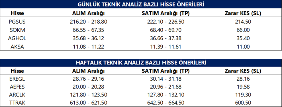 Günlük Teknik Analiz Bazlı Hisse Önerileri