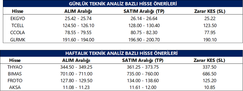 Günlük Teknik Analiz Bazlı Hisse Önerileri