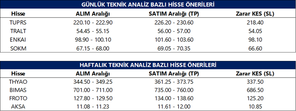 Günlük Teknik Analiz Bazlı Hisse Önerileri