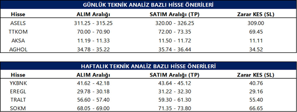Günlük Teknik Analiz Bazlı Hisse Önerileri
