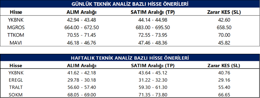 Günlük Teknik Analiz Bazlı Hisse Önerileri