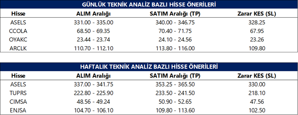 Günlük Teknik Analiz Bazlı Hisse Önerileri