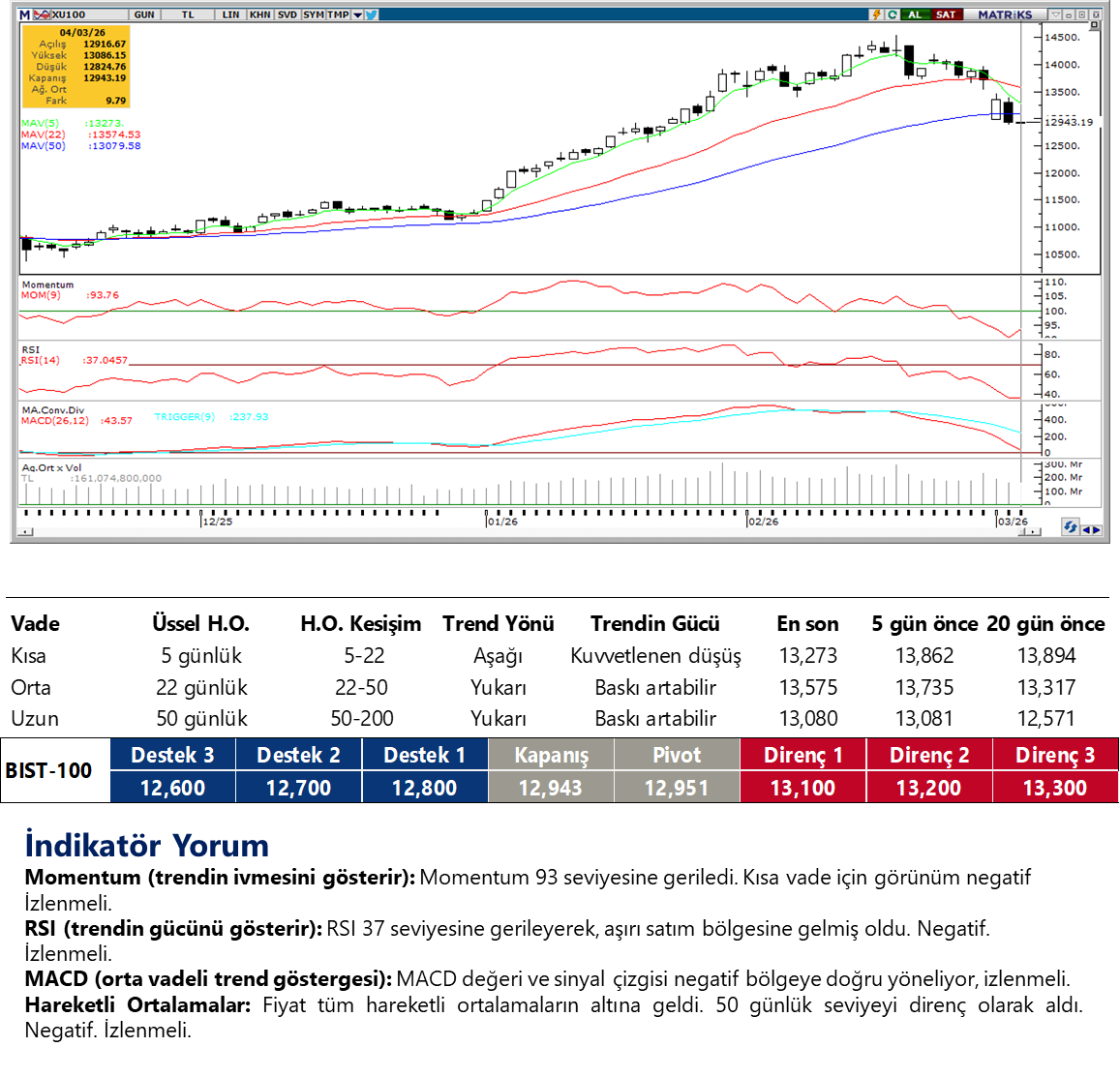 Günaydın. Jeopolitik stres sürüyor, ancak piyasaların bir miktar fiyatlaması ve son haber akışlarında ekstra negatiflik görülmemesi borsalara tepki getirdi. Makro verilerin ve şirket finansallarının da bu tepkiye destek verdiğini söyleyebiliriz. ABD borsalarında dört günlük zayıflığın ardından dün kayıpların bir kısmı telafi edilirken Avrupa’da da benzer görünüm vardı. Fakat, ABD ve Avrupa vadelileri bu sabah negatif bölgede, Asya borsalarında ise dünkü pozitiflik bugün ancak fiyatlanıyor. Özellikle dün %12 değer kaybeden Güney Kore’de bu sabah %10’u aşan yükselişler dikkat çekmekte. Borsa İstanbul’da ise dün gün oyu yatay bir seyir vardı. BIST 100 Endeksi, sadece 10 puan artışla günü 12.943 puandan kapatırken ASELS, DSTKF, BIMAS, KTLEV, CCOLA endekse pozitif, KLRHO, TUPRS, ASTOR, TCELL, HALKB ise negatif etki etti. Son bir haftada düzenli para girişi ile dikkat çeken şirketler ise ASELS, THYAO, ODAS, CCOLA ve LMKDC. Teknik açıdan, 13.000 seviyesi bir pivot olarak takip edilebilir ve altında 12.700 ile 12.400 destekleri; üzerinde ise 13.150 ve 13.450 dirençleri izlenebilir. 4Ç25 finansal sonuçları devam ediyor. Şirketlerin %55’i rakamlarını açıkladı; %26’sında yıllık bazda iyileşme görüyoruz (2Ç25 ve 3Ç25 oranları sırasıyla %22 ve 24). Jeopolitik gelişmelere karşın şirket finansalları sonrasında hedef fiyatlarda yukarı revizyonlar sürüyor. Güncel değerlere göre 12 aylık BIST 100 endeks hedefi 17.360 seviyesinde ve endeks bazında %34 yükseliş potansiyeline işaret ediyor. Günün ajandasında içeride rezervler ve haftalık yabancı işlemleri, Avrupa’da perakende satışlar, ABD’de haftalık işsizlik maaşı başvuruları izlenecek. Türkiye 5 yıl vadeli CDS primleri güne 235 baz puandan başlıyor.