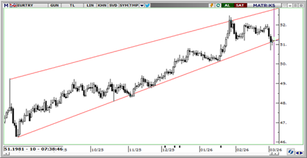 Doların küresel çapta hafif geri çekilmesi euroya nefes aldırsa da, TL tarafında TCMB'nin sıkı likidite duruşu ve yüksek piyasa faizleri çapraz kurdaki yükselişi frenliyor. Teknik göstergeler, kısa vadede gümüş için 50,50 – 51,70 bandında bir hareket ihtimaline işaret ederken, gelecek dönem için kademeli yükseliş eğiliminin korunabileceğinin sinyalini veriyor. Kurda 51,38 ve 51,55 seviyeleri direnç konumunda yer alırken, aşağıda 51, 50,85 ve 50,70 destekleri bulunuyor.