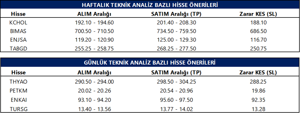 Günlük Teknik Analiz Bazlı Hisse Önerileri