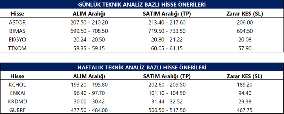 Günlük Teknik Analiz Bazlı Hisse Önerileri