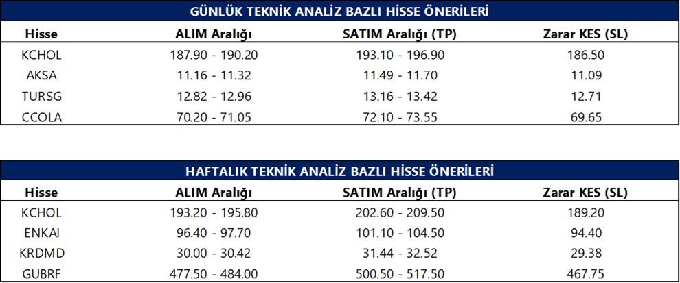 Günlük Teknik Analiz Bazlı Hisse Önerileri
