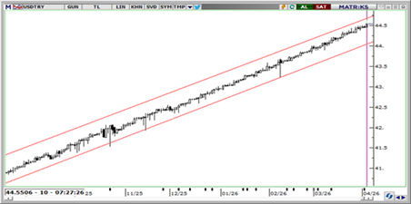 Altı Nisan Hürmüz son tarihinin yaklaşması ve sahada saldırıların hız kazanması enerji fiyatlarını yeniden yukarı iterken, DXY 100'de tutunmaya devam ediyor. İran'ın savaşa devam kararlılığı ve Trump cephesinden gelen karışık açıklamalar belirsizliği koruyor. USDTRY bu sabah 44,55 seviyesinde; yurt içinde sıkı finansal koşullar tampon olmayı sürdürse de 44,50 direnci aşıldı ve yukarı eğilimli görünüm korunuyor. Teknik olarak 44,60, 44,65 ve 44,75 direnç; 44,50, 44,40 ve 44,35 destek olarak takip edilebilir.