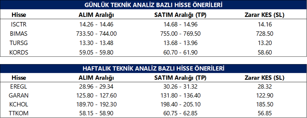 Günlük Teknik Analiz Bazlı Hisse Önerileri