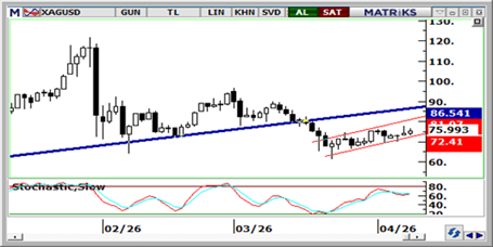 Gümüş fiyatları yükselen kanal içerisindeki hareketini sürdürüyor. Teknik görünüm kısa vade için, kanal sınırlarının denk geldiği 72,65$ - 81,50$ bandında bir hareket ihtimalini destekliyor. Ateşkes sürecinin korunması ve DXY kaynaklı risk priminin azalması, değerli metaller tarafında destekleyici bir zemin oluşturabilir. Buna karşın, eski trend çizgisine denk gelen 85$ seviyesi aşılmadıkça yükselişlere temkinli yaklaşmakta fayda görüyoruz. Geri çekilmelerde ise 74$ ilk destek, 72,50$ seviyesi ise ana destek bölgesi olarak takip ediliyor. Bu seviyenin aşağı yönlü kırılması durumunda düşüş hızlanabilir. Yukarıda ise 77,25$, 80$ ve 82,40$ seviyeleri direnç olarak takip edilebilir.