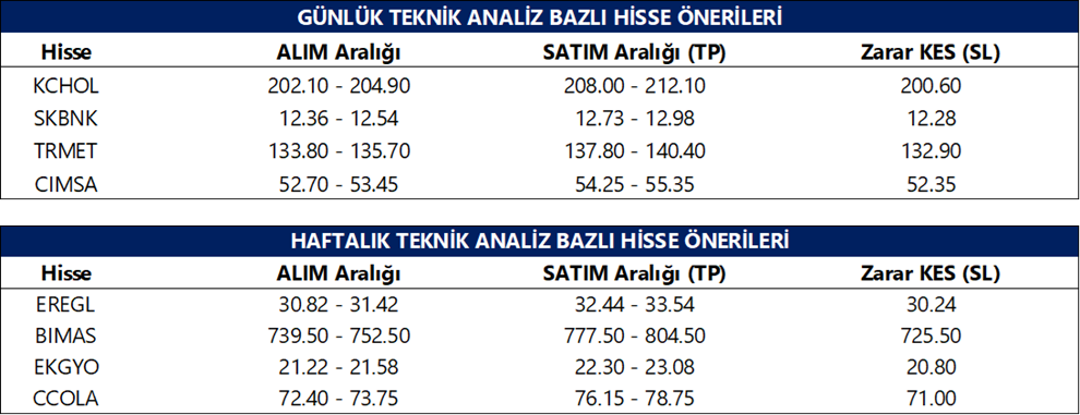Günlük Teknik Analiz Bazlı Hisse Önerileri