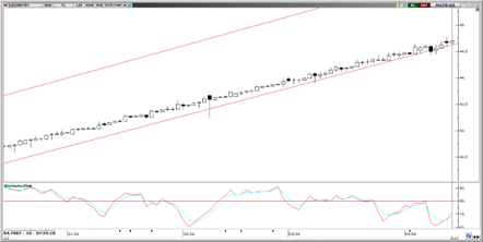 Parite bu sabah 44,70 seviyesinden işlem görüyor. Teknik görünüm, yükselen kanalın alt bandına denk gelen 44,60 seviyesi altında kalıcı bir kırılma olasılığının sınırlı olduğuna işaret ediyor. 44,60 üzerindeki hareketin korunması halinde, kademeli yukarı yönlü eğilimin devamı beklenebilir. Yukarıda 44,75 ve 44,85 direnç; aşağıda ise 44,50, 44,40 ve 44,30 seviyeleri destek olarak izlenebilir.