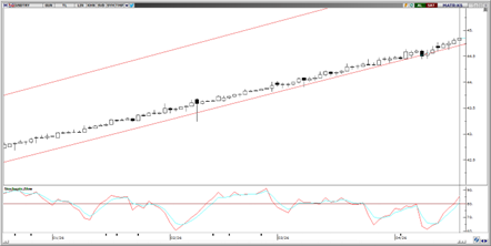 Parite bu sabah tüm zamanların en yüksek seviyesi olan 44,85 seviyesinden işlem görüyor. Yükselen kanalın alt bandına yakın seyrini sürdüren parite için teknik göstergeler yukarı yönlü hareketin, Bugün itibariyle 44,72 seviyesinden geçen alt bant kırılmadığı sürece devam etme olasılığının kuvvetli olduğunu gösteriyor. Kurda 44,90 bölgesi kısa vadeli direnç konumunda yer alırken, olası geri çekilmelerde 44,73, 44,69 ve 44,62 seviyeleri destek olarak takip edilebilir.