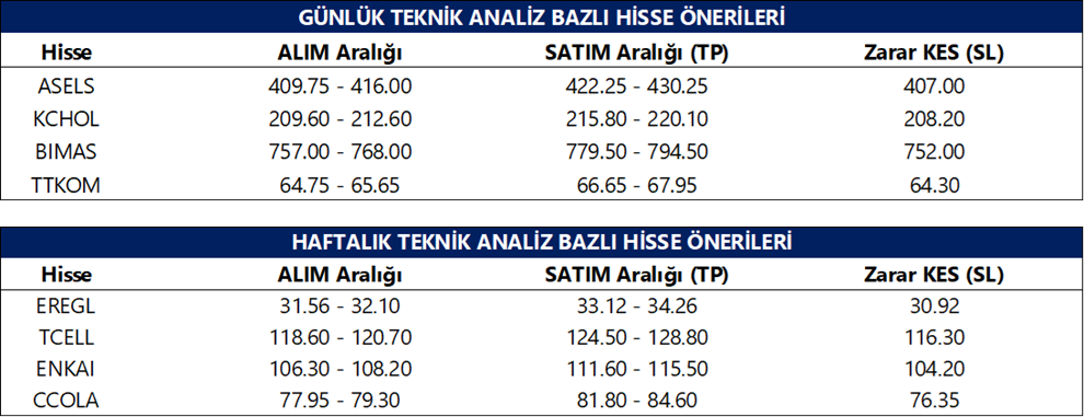 Günlük Teknik Analiz Bazlı Hisse Önerileri