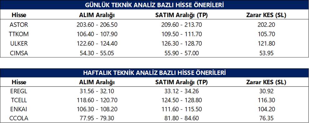 Günlük Teknik Analiz Bazlı Hisse Önerileri