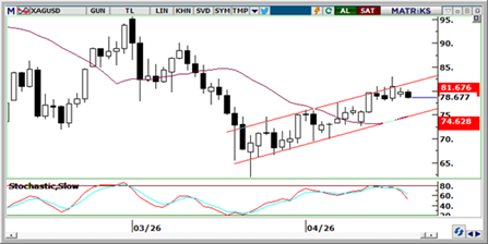 Kısa vadeli yükseliş kanalının üst sınırından gelen dirençle birlikte 80$ seviyesinin altına gerileyen gümüş fiyatları, bu sabah %1,2 kayıpla 78,85$ seviyesinde işlem görüyor. Teknik göstergeler, yükseliş eğiliminin korunabilmesi açısından, kanalın üst bandının bugün itibariyle geçtiği 81,70$ seviyesi üzerinde gerçekleşecek bir günlük kapanışın kritik olduğunu işaret ediyor. Gümüşte 50 ve 100 günlük ortalamaların oluşturduğu 78,50$ - 78,90$ bandı kısa vadede destek bölgesi olarak takip edilecek. Bu bölgenin altında 77,25$ ve 74$ destekleri yer alıyor. Yukarıda ise 80$, 81,70$ (kanal direnci)