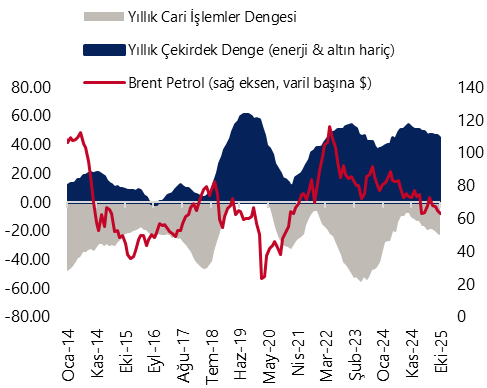 Cari işlemler dengesinin, aralık ayında 5,3 milyar dolar açık vermesini bekliyoruz. Aralık ayında ödemeler dengesi tanımlı dış ticaret açığının 6,7 milyar dolara yükselmesini, seyahat kaleminden kaynaklanan net gelirin azalması ile birlikte hizmetler dengesi fazlasının ise 3,1 milyar dolara gerilemesini bekliyoruz. Böylelikle 2025 yılı cari açığının, 20 milyar dolar (GSYİH’nın %1,3’ü) olan kurum tahminimizin üzerinde, olası revizyonlar haricinde 24 milyar dolar civarında (GSYİH’nın %1,5’i) tamamlayabileceğini tahmin ediyoruz. 2026 yıl sonu cari işlemler açığı tahminimizi ise, 25 milyar dolar (GSYİH’nın %1,5’i) seviyesinden 30 milyar dolara (GSYİH’nın %1,7’si) yükseltiyoruz.