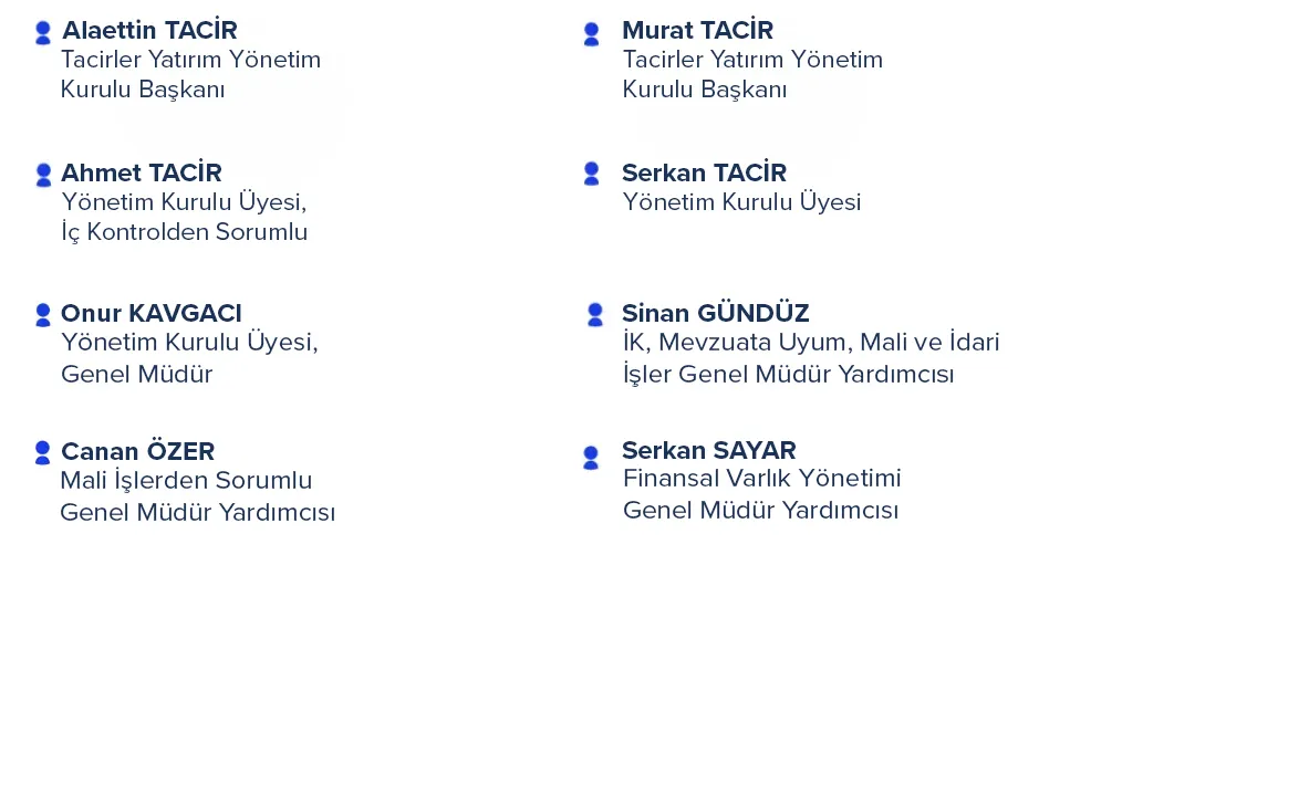 | Aracı Kurumun Ticaret Unvanı | TACİRLER YATIRIM MENKUL DEĞERLER A.Ş. |